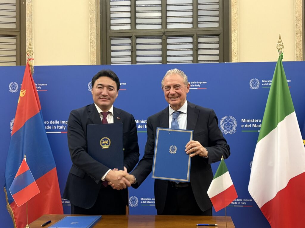 - “Чухал эрдэс бодис болон түүхий эдийн салбарт хамтран ажиллах тухай Монгол Улсын Аж үйлдвэр, эрдэс баялгийн яам болон Бүгд Найрамдах Итали Улсын Италид үйлдвэрлэв яам болон Хүрээлэн буй орчин, эрчим хүчний аюулгүй байдлын яам хоорондын хамтарсан мэдэгдэл”-д Аж үйлдвэр, эрдэс баялгийн сайд Г.Дамдинням, Италид үйлдвэрлэв яамны cайд Адольфо Урсо, Хүрээлэн буй орчин, эрчим хүчний аюулгүй байдлын сайд Жильберто Пикетто Фратин,
