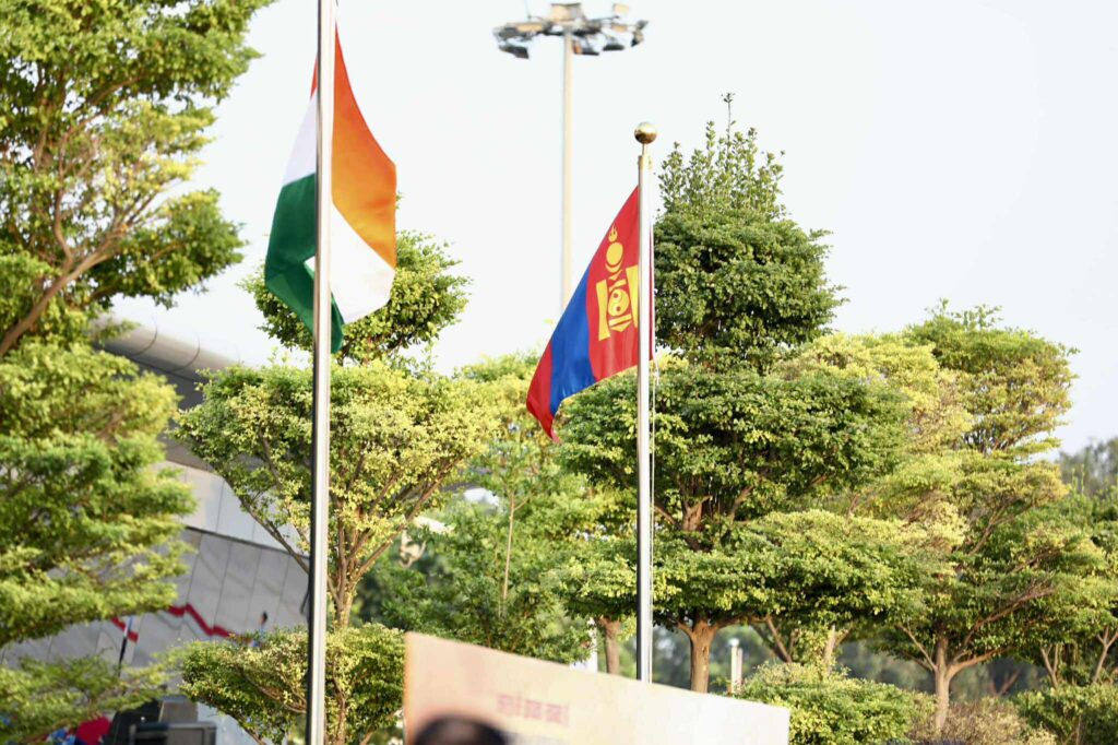 The ceremony began with the playing of the National Anthems of the two countries, followed by a report from the Commander of the State Honor Guard. After paying respect to the Guard of Honor, President Khurelsukh greeted the officials from both India and Mongolia who had gathered to attend the ceremony.