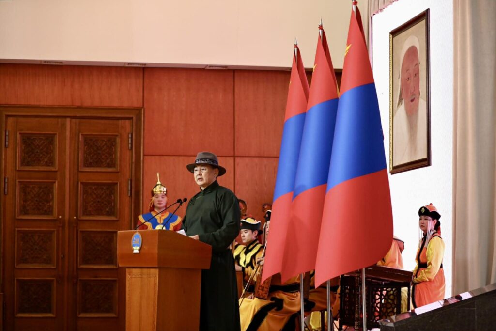 ᠴᠢᠩᠬᠢᠰ ᠬᠠᠭᠠᠨ ᠪᠣᠯᠤᠨ ᠲᠡᠭᠦᠨ ᠦ ᠵᠠᠯᠭᠠᠮᠵᠢᠯᠠᠭᠴᠢᠳ ᠡᠪ ᠨᠢᠭᠡᠳᠦᠯ ᠢᠶᠡᠨ ᠪᠡᠬᠢᠵᠢᠭᠦᠯᠦᠨ ᠲᠥᠷᠦ ᠤᠯᠤᠰ ᠢᠶᠠᠨ ᠮᠠᠨᠳᠤᠭᠤᠯᠵᠤ᠂ ᠬᠠᠤᠯᠢ ᠴᠠᠭᠠᠵᠠ ᠢᠢᠨ ᠳᠣᠣᠷᠠ ᠲᠦᠮᠡᠨ ᠣᠯᠠᠨ ᠢ ᠲᠥᠪᠰᠢᠳᠬᠡᠨ ᠵᠠᠬᠢᠷᠴᠤ᠂ ᠧᠦ᠋ᠷᠠᠽᠢ ᠢᠢᠨ ᠡᠷᠭᠦᠨ ᠠᠭᠤᠳᠠᠮ ᠨᠤᠲᠤᠭ ᠲᠤ ᠣᠯᠠᠨ ᠦᠨᠳᠦᠰᠦᠲᠡᠨ ᠬᠣᠭᠤᠷᠤᠨᠳᠤ ᠢᠢᠨ ᠳᠠᠢᠢᠨ ᠲᠤᠯᠤᠭᠠᠨ᠂ ᠵᠥᠷᠢᠴᠡᠯ ᠲᠡᠮᠡᠴᠡᠯᠳᠦᠭᠡᠨ ᠢ ᠵᠣᠭᠰᠤᠭᠠᠵᠤ «ᠮᠣᠩ᠋ᠭᠤᠯ ᠤᠨ ᠶᠡᠬᠡ ᠠᠮᠤᠷ ᠠᠮᠤᠭᠤᠯᠠᠩ» ᠊ᠢ ᠲᠣᠭᠲᠠᠭᠠᠨ᠂ ᠣᠶᠤᠨ ᠰᠠᠨᠠᠭᠠ᠂ ᠱᠠᠰᠢᠨ ᠰᠢᠲᠦᠯᠭᠡ᠂ ᠬᠤᠳᠠᠯᠳᠤᠭᠠ ᠠᠷᠠᠯᠵᠢᠶᠠ᠂ ᠰᠣᠶᠤᠯ ᠤᠷᠠᠯᠢᠭ᠂ ᠰᠢᠨᠵᠢᠯᠡᠬᠦ ᠤᠬᠠᠭᠠᠨ ᠬᠢᠭᠡᠳ ᠲᠤᠬᠠᠶ ᠢᠢᠨ ᠦᠶᠡ ᠢᠢᠨ ᠬᠦᠮᠦᠨ ᠦ ᠨᠡᠢᠢᠭᠡᠮ ᠬᠥᠭ᠍ᠵᠢᠨ ᠳᠡᠪᠵᠢᠬᠦ ᠲᠠᠭᠠ ᠲᠠᠢ ᠨᠥᠬᠦᠴᠡᠯ ᠢ ᠪᠦᠷᠢᠳᠦᠭᠦᠯᠦᠭᠰᠡᠨ ᠶᠡᠬᠡ ᠲᠡᠦᠬᠡ ᠢᠢ ᠪᠦᠲᠦᠭᠡᠵᠦ ᠴᠢᠳᠠᠭᠰᠠᠨ ᠪᠢᠯᠡ᠃